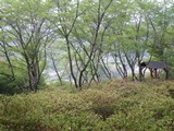 ピークを過ぎたヒラドツツジ くすみ始めたヒラドツツジの花 採蜜中のクロマルハナバチ 林床に出ていたキノコ 緑深まる石河内集落