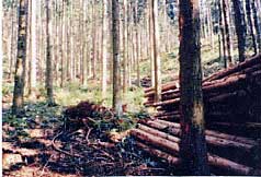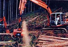 | 4 概 要 | 地域の木材加工事業協同組合の構成員として、製材業、工務店等とともに、原木の供給から加工販売に至るまで一体的に取組み、プロセッサ等高性能林業機械を導入して収益を重視した間伐を実施(H13年度の間伐面積653ha)。森林所有者に対しては地域座談会(毎年20回前後)を通して、収益性の高い気仙林業の取組による所得と経営意欲の向上を図るため、これまで6団地(169ha)の緊急間伐団地を設定し、小流域での集団間伐の普及を推進。さらに需給調整会議の開催、検知伝票による信用取引の確立等により流通の合理化を推進。間伐材は搬出して(H13年度は約14,000m3)、加工協同組合等で集成材、プレカット等に加工しハウスメーカー等に出荷。これらの活動を通じて「気仙スギ産地形成」が着実に推進。 |