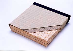 | 4 概 要 | 地域のヒノキ間伐材を利用し、自然素材を活かした畳床を開発。製品はヒノキの持つ天然の防ダニ効果により殺ダニ材を用いる必要がない。また、接着には化学物質を用いておらず廃棄しても腐葉土化して土に還ることから環境に優しい製品。耐久性も試験の結果、従来の畳床を上回る結果を得ており大手住宅メーカーも注目し生産量も月産4,000枚に拡大。今後の利用促進に期待。 |