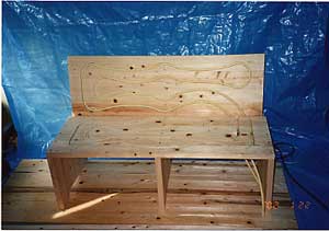 | 4 概 要 | 地元産スギ間伐材を使用した暖房製品(イス、床暖房)、施設を考案・製作。温水を使った暖房システムであり、室内の空気が汚れない等の利点。化石燃料の削減と間伐材の有効利用に着目した製品。健康を考えたエコ製品として老人ホーム等の福祉施設(全国で約60箇所)で施工。 |
