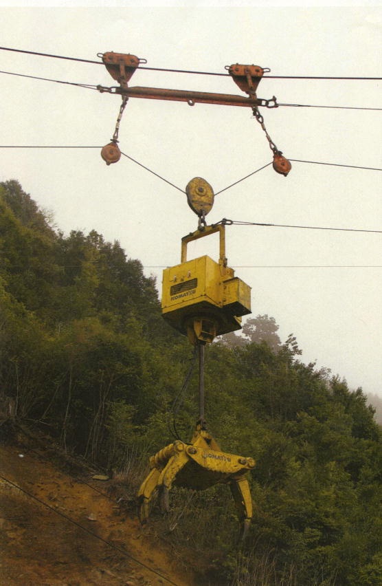 木材搬出の労働生産性の向上と労働安全を図る架線集材方法を確立するため、集材機の運転手が運転席でリモコン操作をすることにより、伐採した木を人が山でワイヤーを使い架線に取り付けること等を不要とするカメラ付きケーブル・グラップルの開発・実用化を目的として実施したものです。