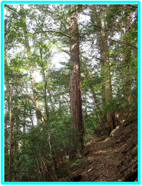 この森の特徴は、94~219年生のモミ、ツガ、ヒノキに広葉樹を交えた天然生針広混交林からなっている。