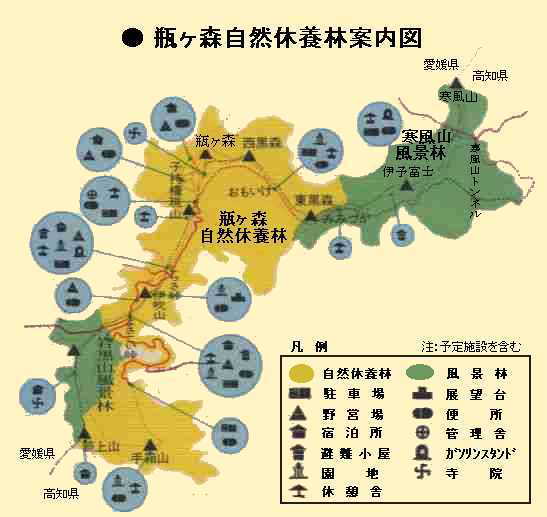 平成3年4月、寒風山トンネルと旧石鎚スカイラインとを結ぶ瓶ケ森村道に一般車両も乗り入れ可能となり、この素晴らしい自然に老人から子供にいたるまで身近に接することができるようになりました。