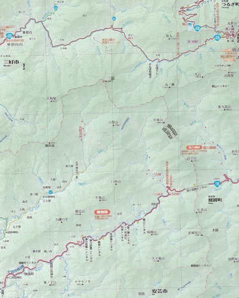 国道195号線を東進し、大栃から県道49号線、県道217号線を経て、林道西熊・別府線(全線舗装)を北上。