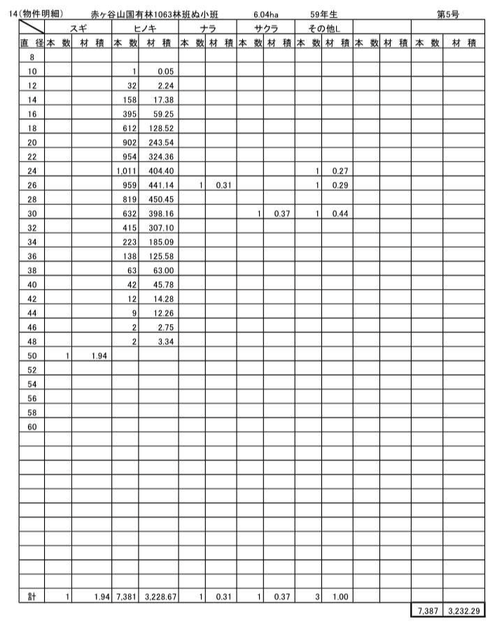 >赤ヶ谷山1063林班ぬ小班
