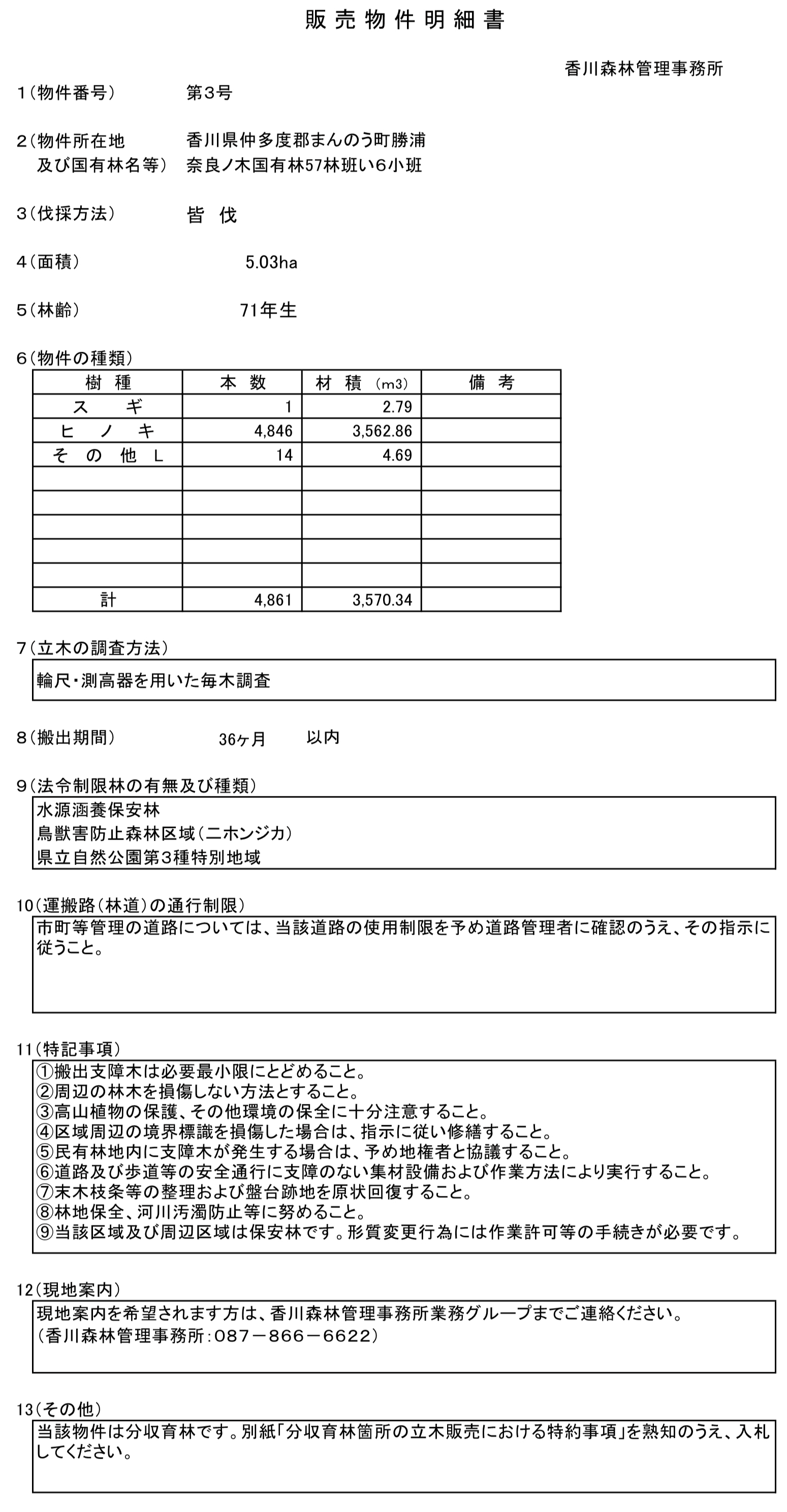 国有林名:奈良ノ木