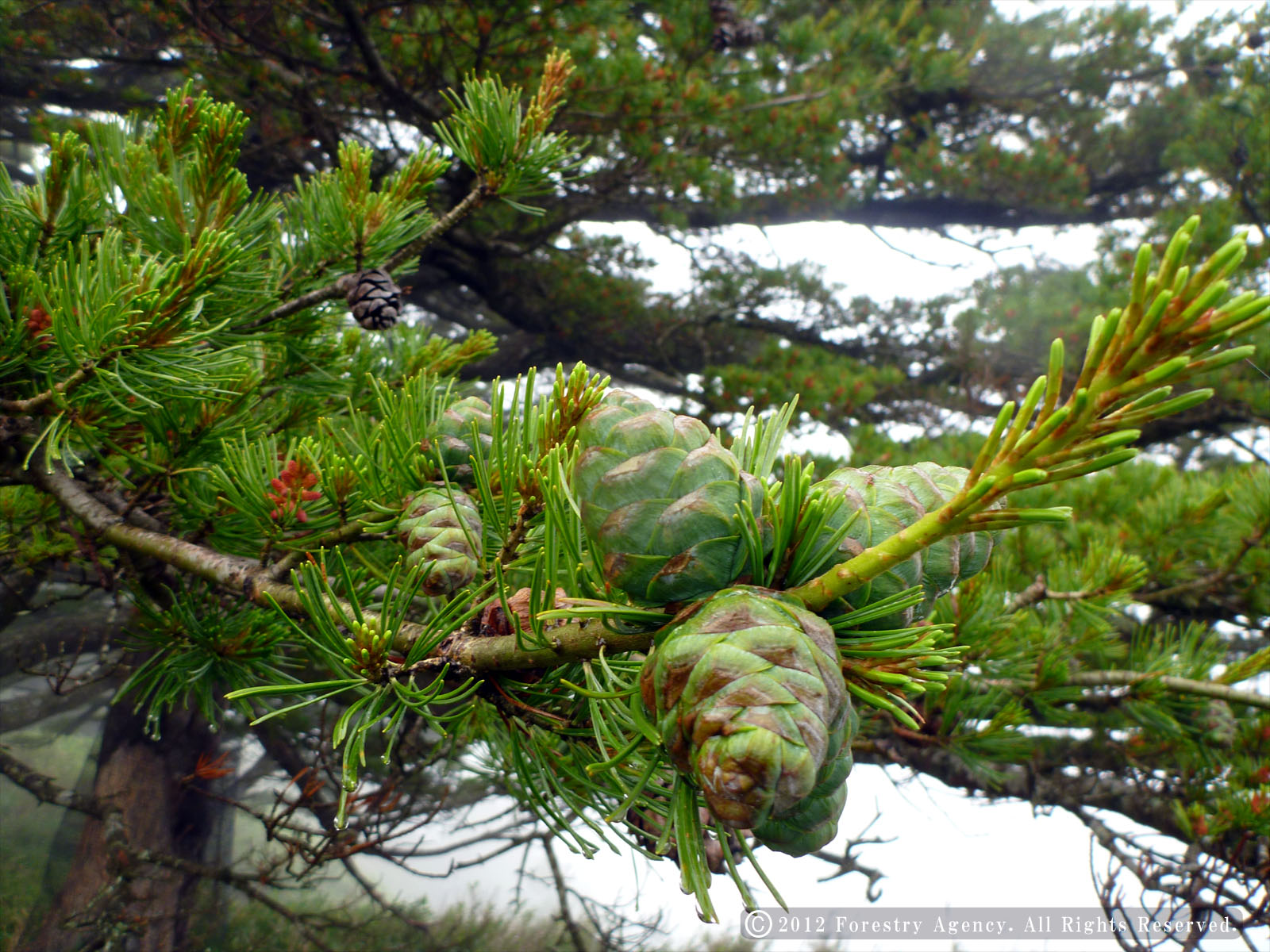 更新日:25年4月1日 29.鎗戸植物群落保護林 当保護林は、剣山から一ノ森を経て鎗戸山への稜線の南側に位置し、コメツガやシコクシラベ、ヒメコマツ(ゴヨウマツ)、ウラジロモミなど四国では限られた高標高地域にしか見られない亜高山帯の針葉樹林が広がっています。 この付近は戦後に国有林として買い取った箇所で、戦前に伐採された箇所も多く、保護林内は伐採を免れた貴重な原生林が残っています。 また、隣接する鎗戸シコクシラベ林木遺伝資源保存林は、シコクシラベの純林を見ることができる貴重な森です。 保護林マップ上空から見た保護林(2012年10月5日撮影) その他の写真はフォトアルバムをご覧下さい。 保護林内に生育する樹木ヒメコマツ(ゴヨウマツ)は、標高の高い所(ブナ帯から亜高山帯)に分布し、葉が5本ずつつくためゴヨウマツとも呼ばれます。 当保護林ではシコクシラベやコメツガに混ざって生え、胸高直径115cmの巨木も確認されています。 ▲ヒメコマツの巨木 林内には、写真のようなヒメコマツの巨木が生育していますが、ニホンジカにより樹皮が剥がれる被害が増えており、ボランティアの方々や請負によりラス巻を行っています。徳島森林管理署が平成24年12月に一ノ森山頂付近のヒメコマツの枯死木2本から生長錐でコアを取り、年輪を調べた結果、生長量は約1mm/年ということが分かりました。胸高直径60cmの木であれば樹齢約300年と推定されます。 ▲ヒメコマツの葉と若い球果(2011年7月撮影) ▲コメツガの葉と球果(東赤石にて撮影) コメツガの球果はツガと異なり、球果の付け根が曲がりません。 ▲コメツガの若枝に生える毛(東赤石にて撮影) コメツガはツガと異なり毛が生えています。ツガの特徴は横荒山保護林をご覧下さい。 |