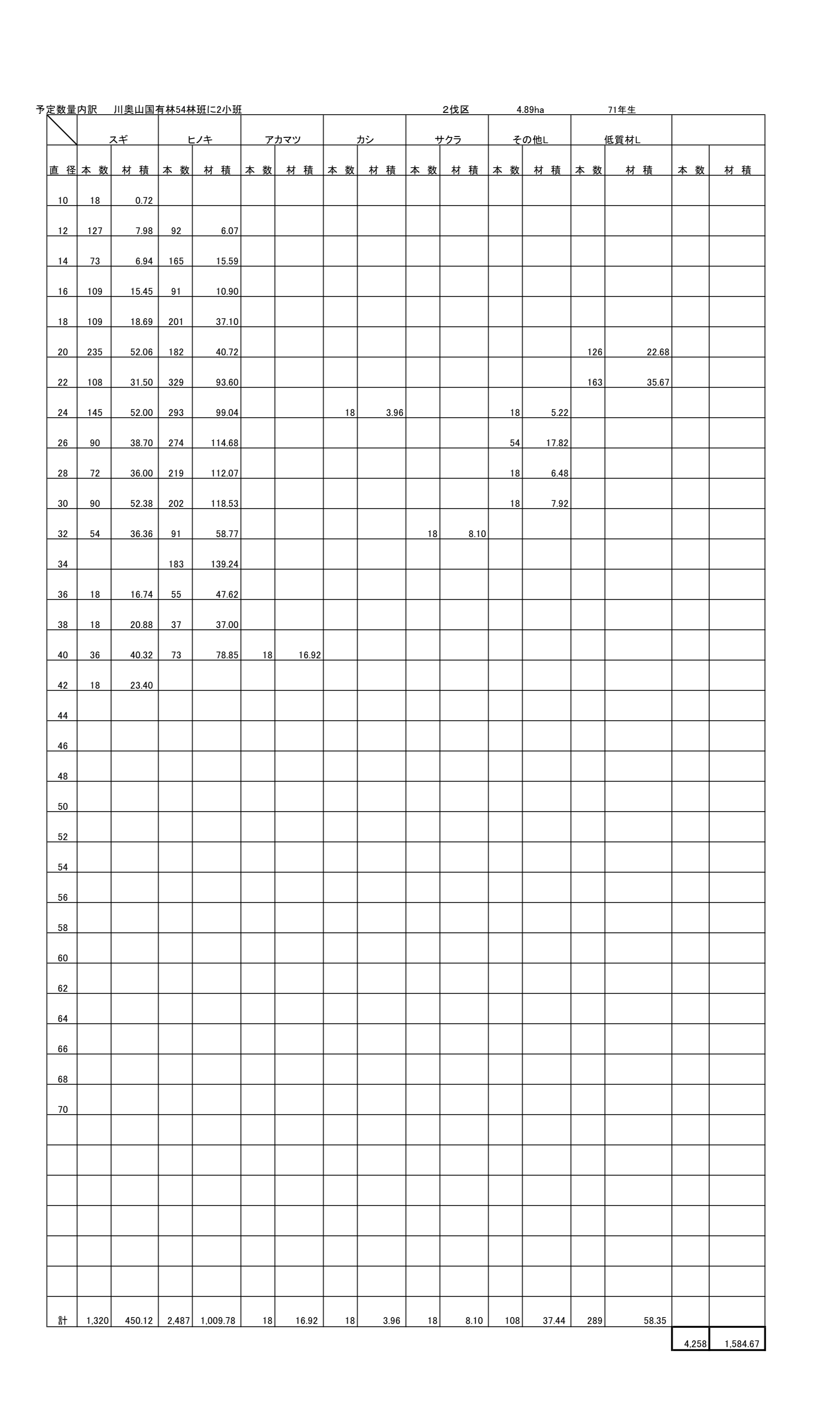 | 皆伐 | 71 | 4.89 | スギ | ヒノキ | その他 | 計 | |