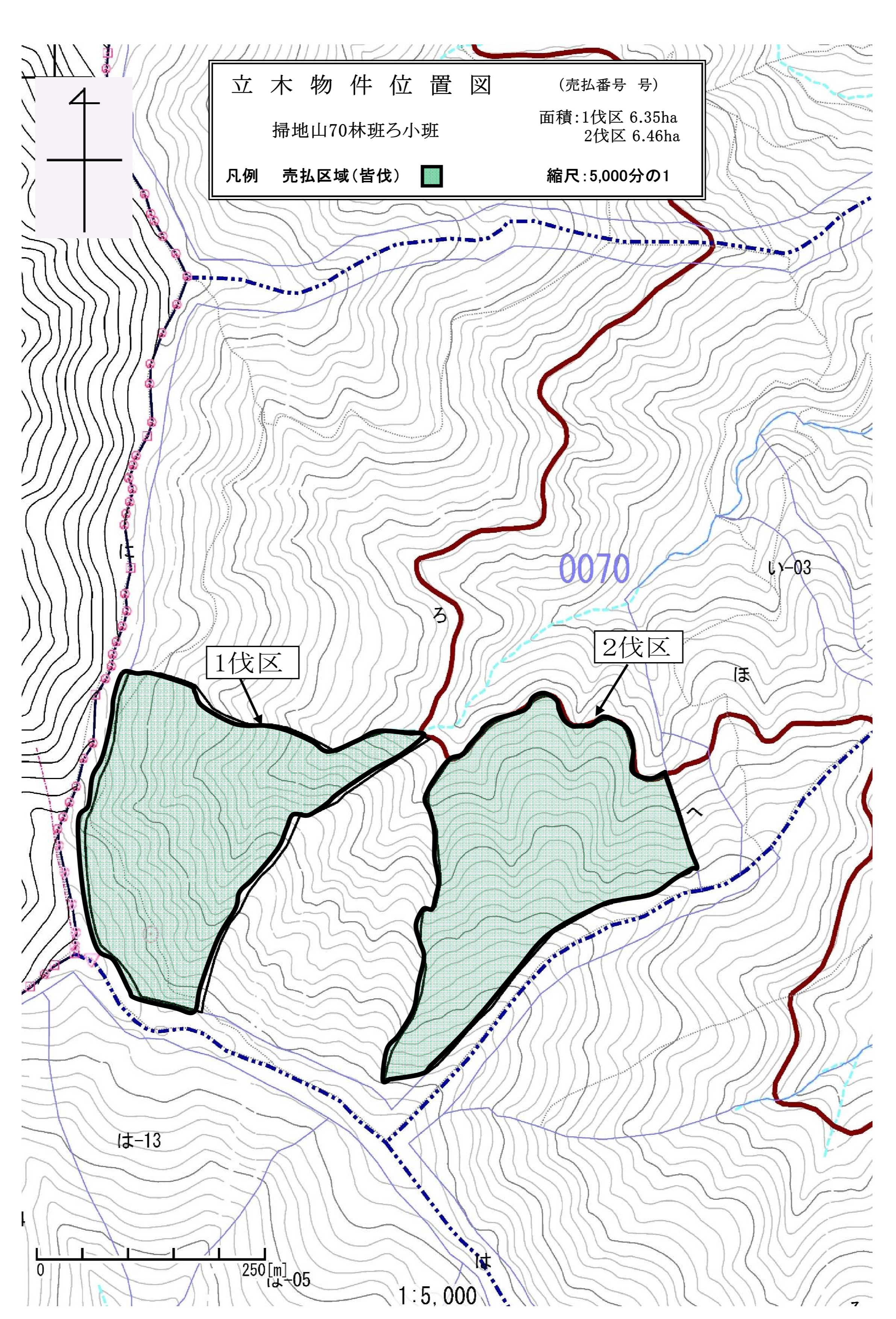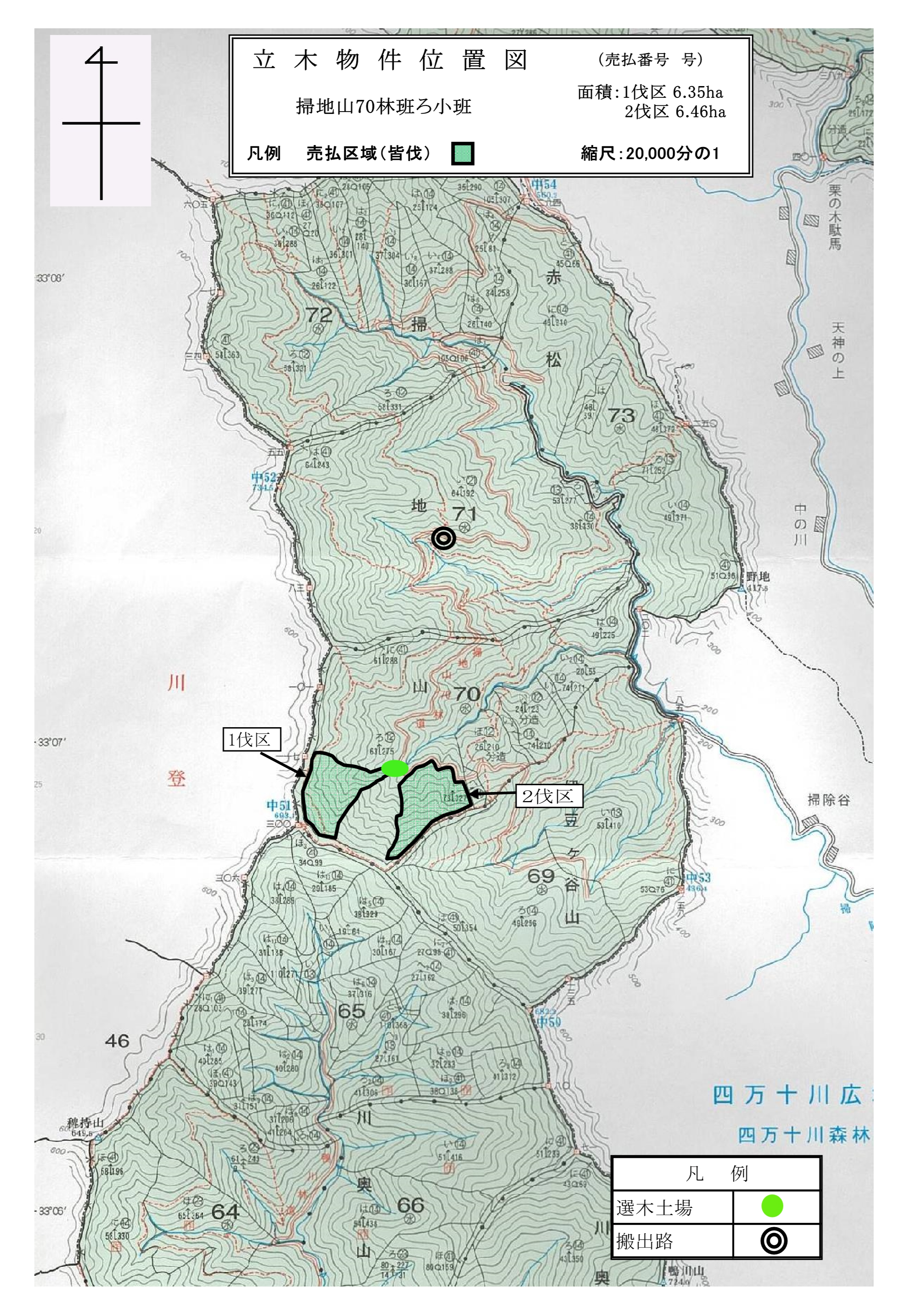 | 2.物件所在地及び国有林名等 | 高知県四万十市竹屋敷 掃地山70林班ろ小班(2伐区)(国造) |