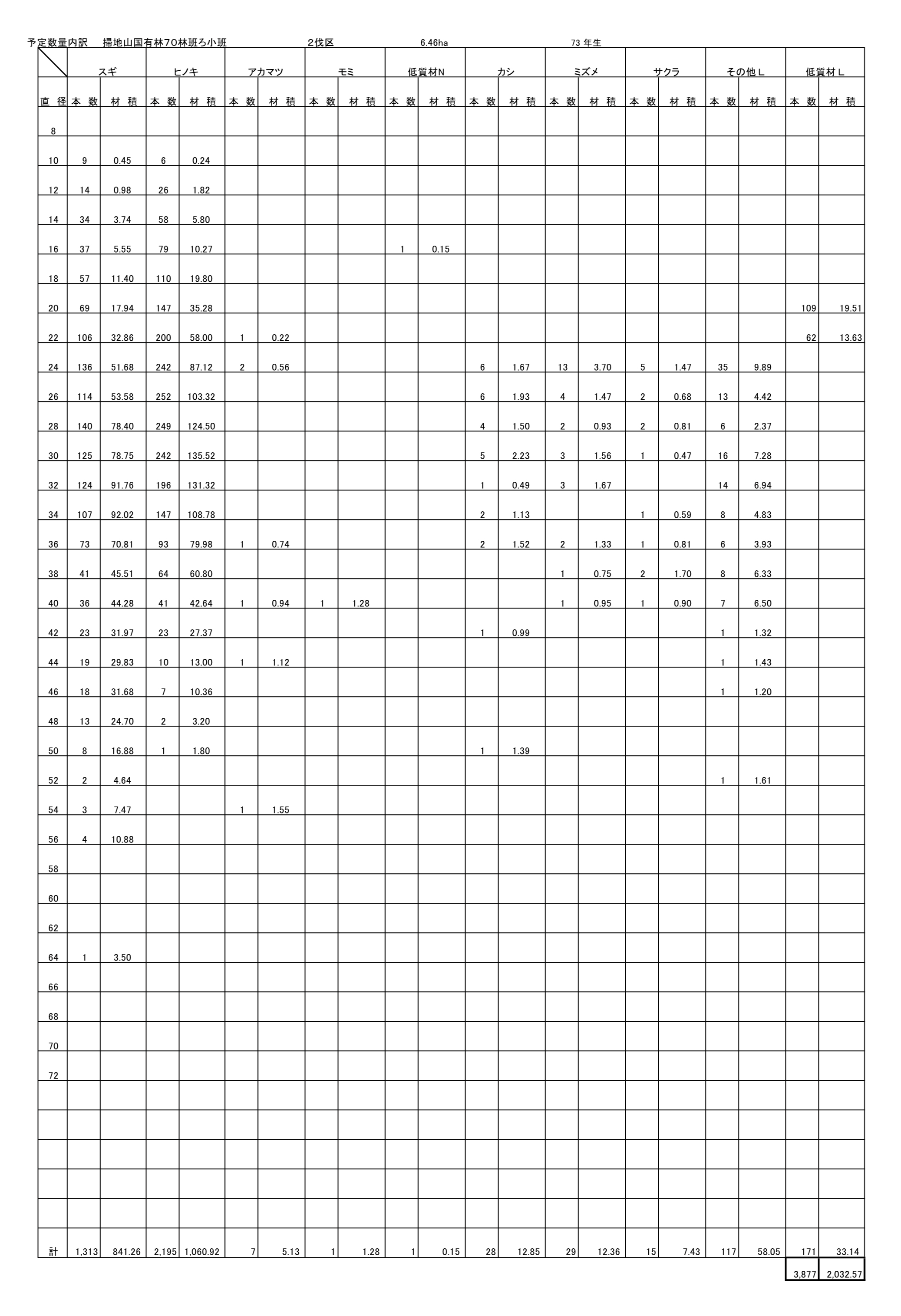 | 皆伐 | 73 | 6.46 | スギ | ヒノキ | その他 | 計 | |