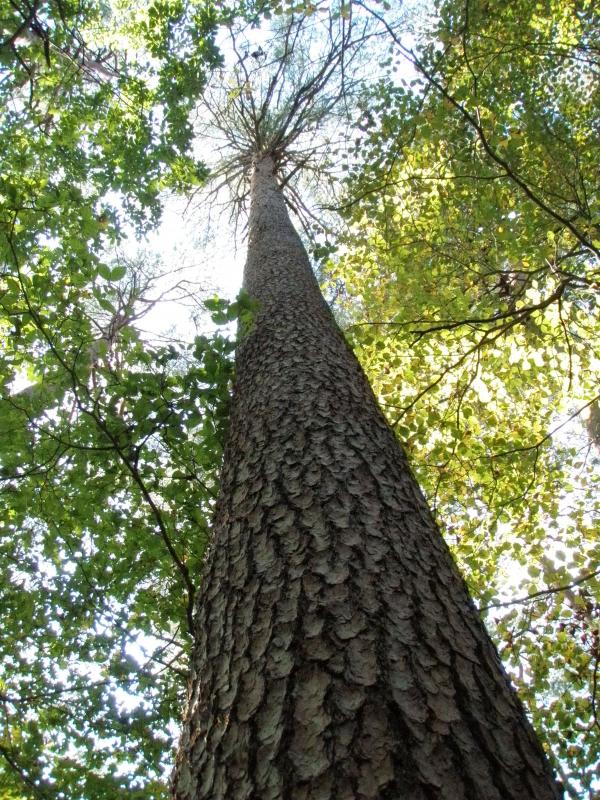 7.21haの林内には、樹齢約160年、胸高直径90cm、樹高25m以上に達するアカマツの巨木が林立し、中・下層にコナラ、クリ、ヤマボウシ、ムラサキシキブ等の広葉樹が広がり、ミツバアケビ、ツタウルシが絡み、林床にはマイヅルソウやキバナイカリソウの草木類約100種類が見られるなど、自然環境豊かな巨木の森を、民家が点在するごく身近な場所で気軽に散策することができます。