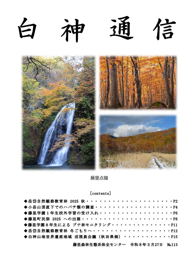 藤里森林生態系保全センターの活動状況や、白神山地周辺の動植物の話題等について情報発信しています。