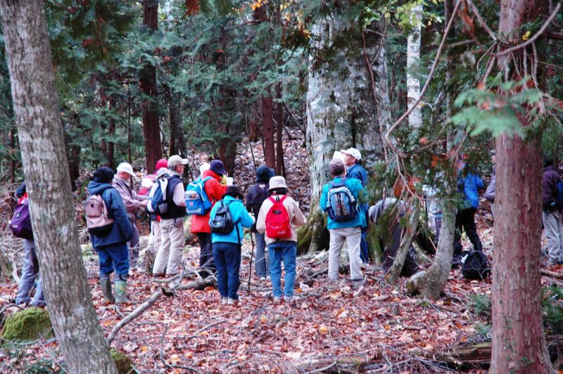 途中、樹齢200年に達する樹木を観察したり、自然景観に優れた天然林の姿を見渡し、参加者は深まった秋を満喫することが出来ました。