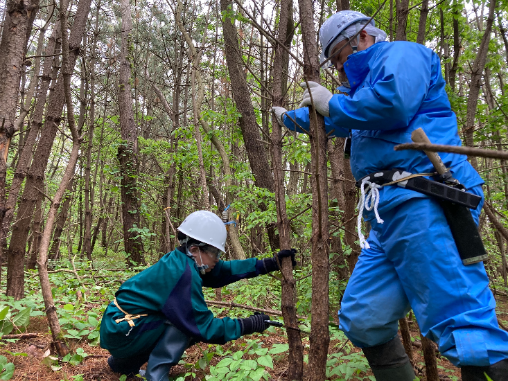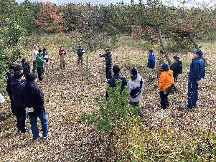 ボランティア団体と連携した活動として、植樹イベントでクロマツを植栽した箇所の下刈を実施しました。 |