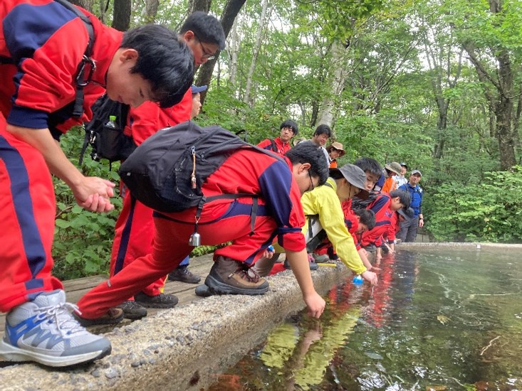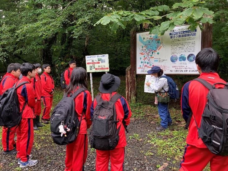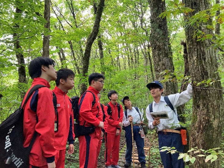 地域の自然に触れ合うことで自然の豊かさや地域に対する理解を深め、環境問題を考えることを目的に、鳥海自然休養林(中島台地区)のブナ林と獅子ヶ鼻湿原で植物観察等を実施しました。 |