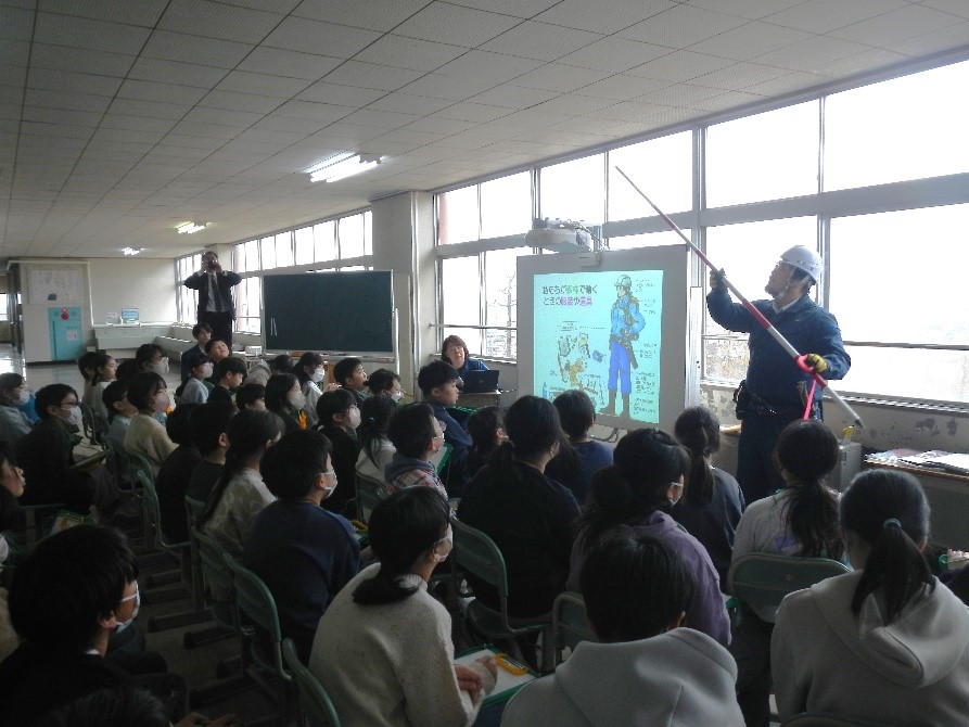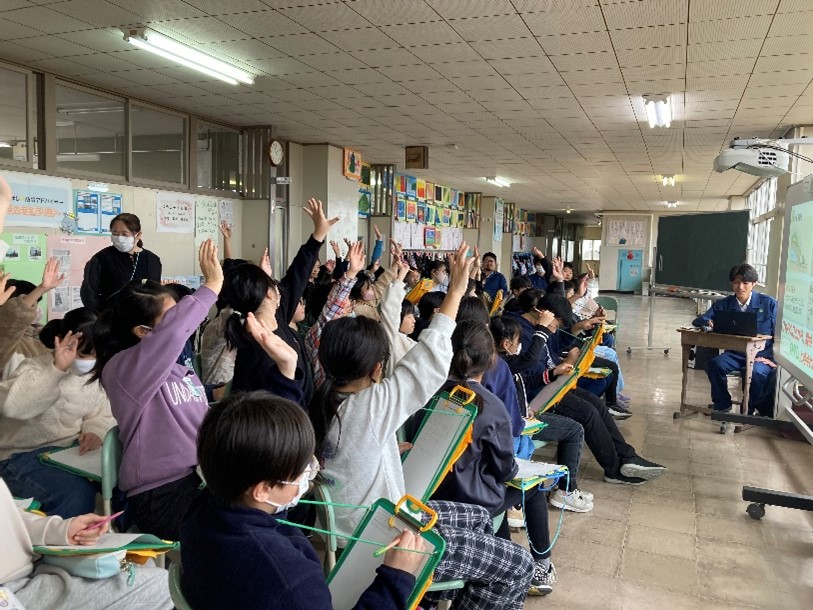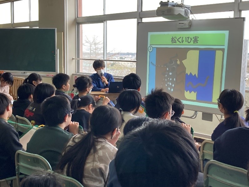 令和7年11月18日 | 鶴舞小学校 | 署職員が由利本荘市立鶴舞小学校を訪問し、5年生を対象に森林の役割や地元の特徴的な国有林である海岸林についてなどの学習を行いました。 |